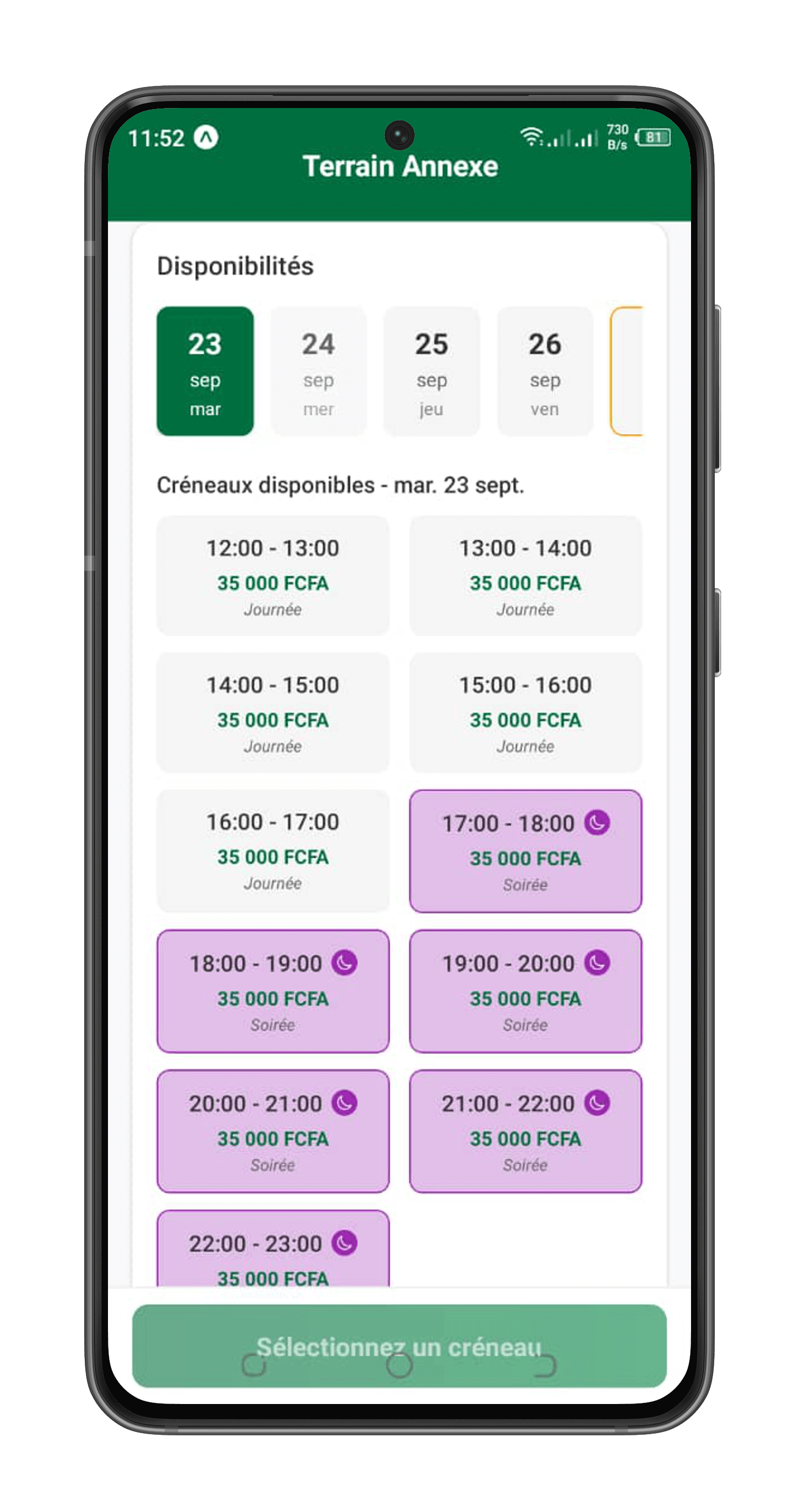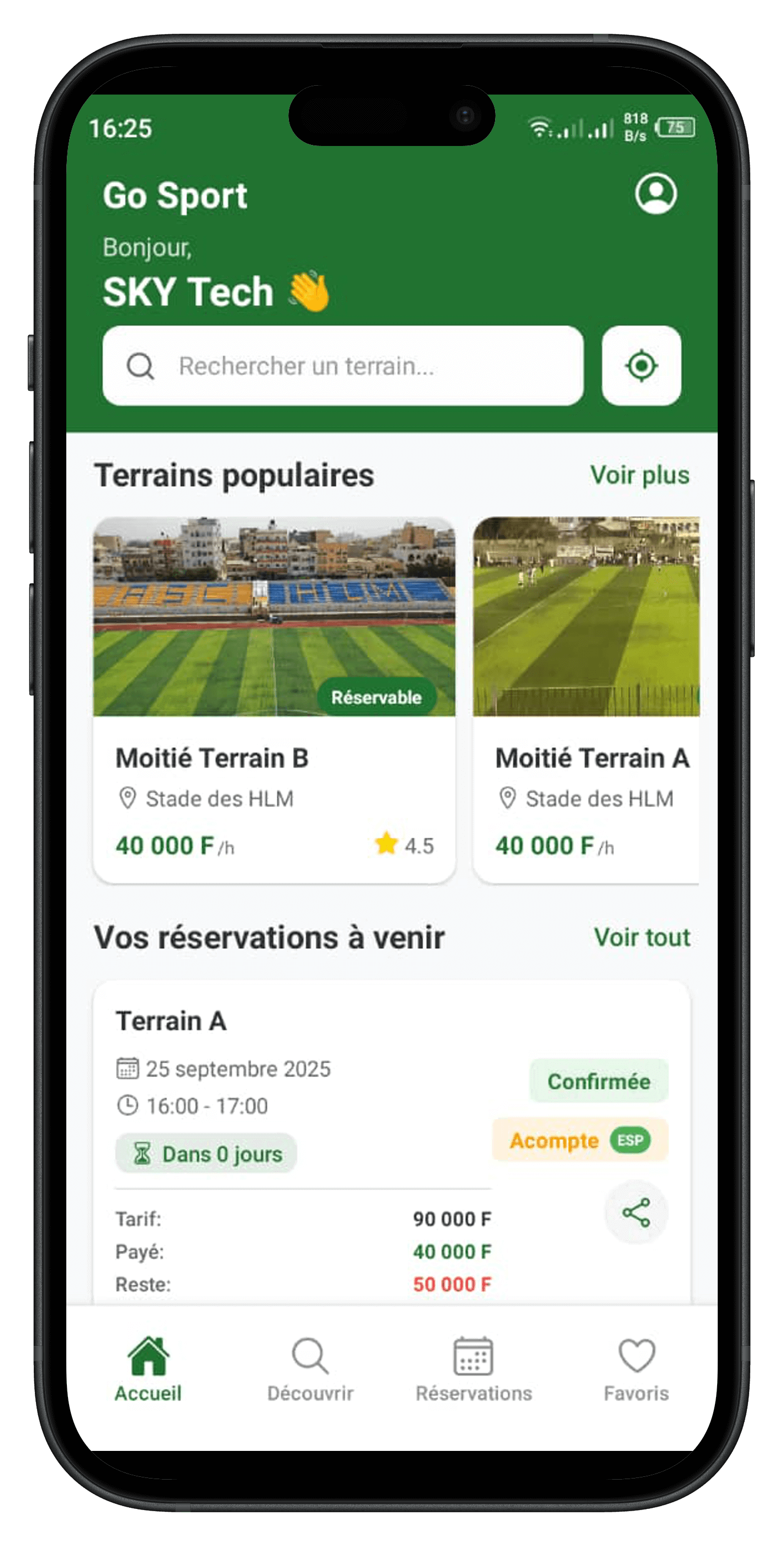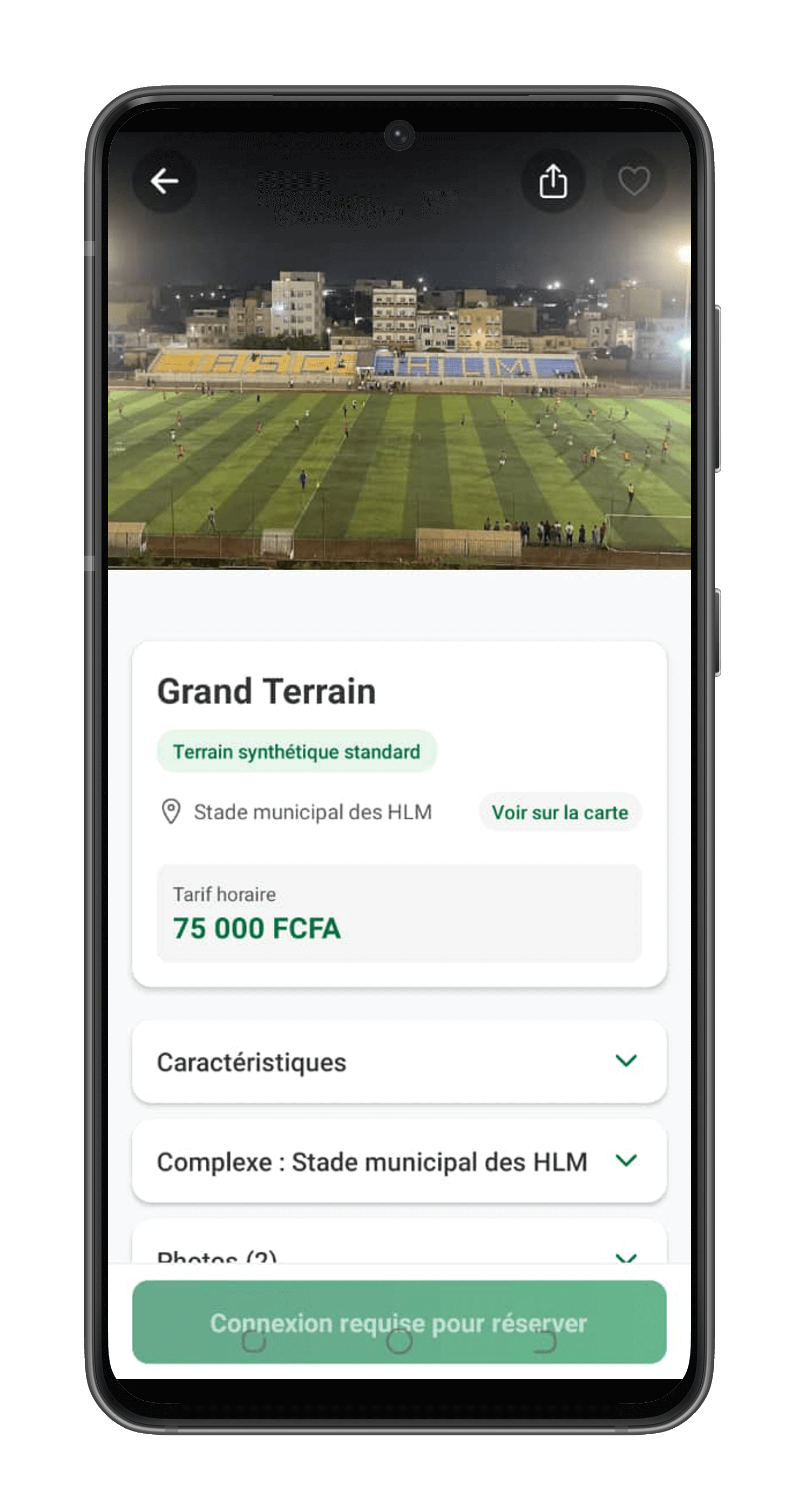 Trouvez et réservez les meilleurs terrains de football au Sénégal. Simplicité, rapidité et sécurité garanties.