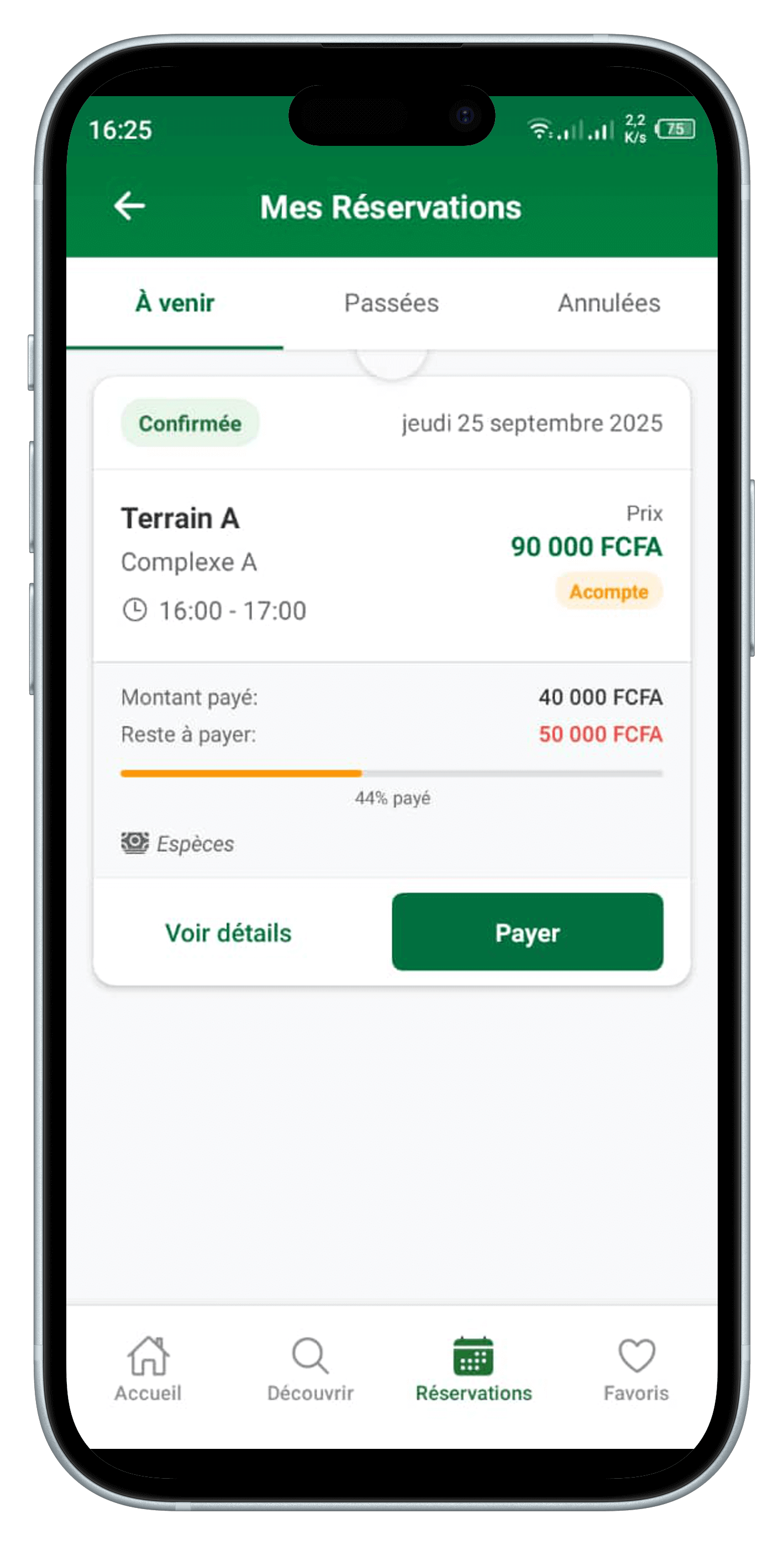 Réservez vos terrains où que vous soyez et recevez des notifications instantanées pour vos réservations.